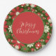 Retro 60s 70s Floral Merry Christmas Script Paper Plate