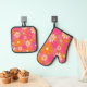 Retro 60s 70s Groovy Hot Pink Floral Pattern Oven Mitt & Pot Holder Set