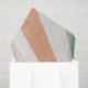 A 70s colour palette, sunburst striped pattern with gold, pink, peach, cocoa brown and mint geometric sunrise stripes with a soft white background. Artwork created and graphically designed by internationally licensed artist and designer, Audrey Jeanne Roberts, copyright.