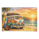 Retro 60s Hippie Beach Bus Sunset | Surf Van Life Pillowcase