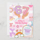 Retro 67 Aesthetic Patch Party Invitation, I Was 6 Now I'm 7 Kids Birthday Invite, Editable Pink Wavy Preppy 7th Birthday Party