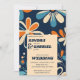 Retro 70ies teal navy blue shades daisy flowers wedding editable template invitation instant digital download, modern retro wedding invitation muted colours