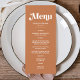 Perfect for adding a touch of nostalgia to your fall wedding decor. Ideal for a retro wedding, this menu complements any retro wedding theme, capturing the essence of a 70s inspired wedding. Embrace the boho disco wedding vibe with our design, enhancing the disco wedding atmosphere with its retro wedding aesthetic. The menu's burnt orange tones perfectly align with burnt orange weddings, creating a cohesive burnt orange wedding theme. Ideal for a fall wedding, it offers elegant fall wedding ideas and burnt orange wedding ideas. Perfect for a boho wedding, this menu seamlessly fits into a fall boho wedding or terracotta wedding. The boho terracotta wedding design pairs beautifully with burnt orange and sage green wedding colours, making it perfect for a desert wedding. Enhance your celebration with unique desert wedding ideas and a stunning boho desert wedding atmosphere.