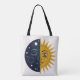 Retro 70s Celestial Sun Moon Split Face Art Print Tote Bag