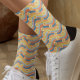 Retro 70s Daisy flower Rainbow stripes Socks