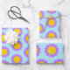 Retro 70s Floral Pattern in Blue Purple and Yellow Wrapping Paper Sheet