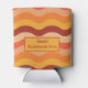 This is custom can cooler for bachelorette parties featuring beautiful abstract waves pattern in designed in retro 70s colours like orange, red, yellow, brown and beige.