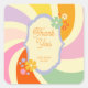 Retro 70s Groovy Wave Flower Thank You Square Sticker
