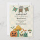 Stay groovy and host a retro 70's Halloween Baby Shower! This custom invitation template is gender neutral with checkered background, retro muted colors, and cute Halloween graphics of pumpkins, ghosts, mushrooms, and bats. Pennant banner title at the top says "a little BOO is almost due". All text is editable - just click the "personalize" button. Don't forget to check out the matching items in the collection to host your baby shower!
