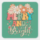 Retro 70's Merry and Bright Happy Flowers Square Sticker