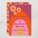 Bring some simple stylish groovy floral 70s vintage fun with a modern twist to your wedding with this 1970s minimalist floral wedding invitation. Cool retro vintage daisy rainbow arch design in apricot orange tangerine, pink, mustard yellow and burgundy with groovy typography script which is easy to personalise using the simple templates. Ideal for setting the tone for a summer spring or autumn wedding. Original artwork by artist Catherine Sweetman