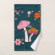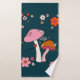 Retro 70s Mushrooms And Flowers Navy Blue Bath Towel Set