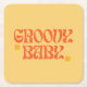 Retro 70's themed font in mustard and Orange and the words 'groovy baby'.