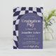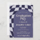 Retro 70s Navy Chequered Arch Photo Graduation Invitation
