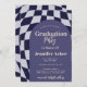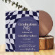 Retro 70s Navy Blue Chequered Arch Photo Graduation Invitation...