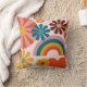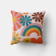 Retro 70's pink floral, rainbow and heart motifs cushion