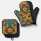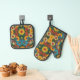 Retro 70s style colourful daisies oven mitt & pot holder set