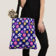 Retro 70s Style Flower Pattern on Dark Blue Tote Bag