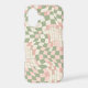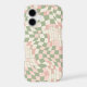 A clean vector style 9:16 aspect ratio pattern file of a retro 1970s groovy wavy checkerboard and distorted grid. The pattern fills the entire canvas with flowing, undulating sage green, blush pink, and cream colored waves that warp and distort the design. There are no other objects, borders, or frames, just the pure pattern covering the field. Simplified composition, free of complex background details, suitable as a template for phone cases, notebooks, or other print-on-demand products.