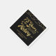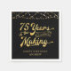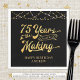 Retro 75th birthday personalised party napkins featuring the title 75 YEARS IN THE MAKING in a calligraphy script typography which incorporates his or her birth year within the design and your custom text below (the sample shows HAPPY BIRTHDAY NAME) in gold accented with string lights and your choice of background colour (shown in black). ASSISTANCE: For help with design modification or personalisation, transferring the design to another product or if you would like coordinating items, contact the designer BEFORE ORDERING via the Zazzle Chat MESSAGE tab below or email makeitaboutyoustore@gmail.com.