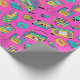 Retro 80s Fun Neon Pink Bright Music Pattern Girly Wrapping Paper