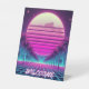 retro, 80s neon moon/palms pedestal sign