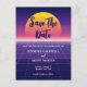 This retro 80s wedding Save the Date postcard features cool, purple synthwave art and a sunset above the neon lines. This awesome throwback eighties themed postcard is bold and fun, sure to catch anyone's eye and let them know you are throwing a rockin' wedding party.