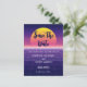 Retro 80s Neon Purple Synthwave Sunset Rock Star Announcement Postcard