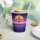 This retro 80s wedding paper cup features cool, purple synthwave art and a sunset above the neon lines. This awesome throwback eighties themed wedding decor is bold and fun, sure to catch anyone's eye and let them know you are throwing a rockin' dance party.