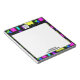 Retro, trendy, and different - this 80s fun design has a colourful geometric pattern of many shapes in bright colours - triangles, squares, rectangles, along with lines and dots. The eighties style pattern borders a large white rectangle space for taking notes or doodling. There is a small square at the top to put in your company logo, and custom text for a business name and website.