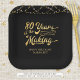 Retro 80th birthday personalised party paper plates featuring the title 80 YEARS IN THE MAKING in a calligraphy script typography which incorporates his or her birth year within the design and your custom text below (the sample shows HAPPY BIRTHDAY NAME) in gold accented with string lights and your choice of background colour (shown in black). ASSISTANCE: For help with design modification or personalisation, transferring the design to another product or if you would like coordinating items, contact the designer BEFORE ORDERING via the Zazzle Chat MESSAGE tab below or email makeitaboutyoustore@gmail.com.