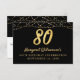 RSVP enclosure card to include with an 80 birthday party invitation featuring retro typography and string light in black and gold. ASSISTANCE:  For help with design modification or personalisation, transferring the design to another product or if you would like coordinating items, contact the designer BEFORE ORDERING via the Zazzle Chat MESSAGE tab or email makeitaboutyoustore@gmail.com.