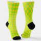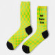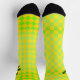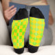 Welcome to the Odd Socks Club — where matching is overrated. These retro 90s crew socks are intentionally mismatched: one sock sports a bold square chequerboard pattern, the other a diamond harlequin — both in vibrant lime green and lemon yellow with a classic black heel and toe.