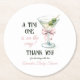 Retro A Tini One Martini Pink Bow Girl Baby Shower Round Paper Coaster