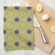 Retro Abstract Black and Yellow Flowers Pattern Tea Towel
