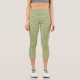 Retro Abstract Blue and Yellow Flowers on Green Capri Leggings