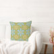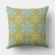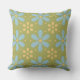 Retro Abstract Blue and Yellow Flowers on Green Cushion