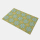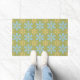 Retro Abstract Blue and Yellow Flowers on Green Doormat