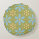 Retro Abstract Blue and Yellow Flowers on Green Round Cushion