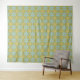 Retro Abstract Blue and Yellow Flowers on Green Tapestry