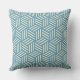 Retro Abstract Optical Illusion Cubes Pattern Blue Cushion