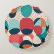 Soft yet striking, this "Retro Shapes" throw pillow features a rhythmic, overlapping pattern of smooth pebble and egg silhouettes. The organic, rounded forms are rendered in a sophisticated mid-century palette of muted teal, vibrant coral, terracotta, and deep midnight navy. Playful clusters of stippled dots add texture and movement to the composition, set against a warm cream background. This design perfectly captures the cheerful, optimistic aesthetic of vintage abstract art, offering a refined pop of color and shape for any modern living space.