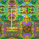 Retro abstract sunflower painting green gold fabric