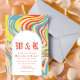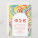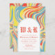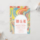 Fusion of retro and modern designs featuring swirl marble abstract pattern with old English font monogram and arch frame personalised wedding invitation. Orange, yellow blue and pink colour palette wedding invite with swirl marble pattern background. This card is easily editable. If you need help with the customisation of this product or you need more matching products for this collection kindly message me via Zazzle.