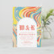 Retro Abstract Swirl Arch 70s Monogram Invitation