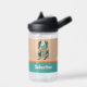 This retro tropical design feature a surfboard standing in the sand surrounded by shells and leaves. Stay hydrated in style with our personalised water bottle! Designed for school and college students, it combines functionality and customisation. Choose your style and add your name to make it uniquely yours. With its durable construction and leak-proof cap, it's perfect for carrying in backpacks. Quench your thirst and showcase your personality with our personalised water bottle. Stay refreshed and stand out from the crowd!