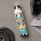 This retro tropical design feature a surfboard standing in the sand surrounded by shells and leaves. Stay hydrated in style with our personalised school and sports water bottle! Customise it with your name or team name for a one-of-a-kind accessory. With a leak-proof design and durable construction, it's the perfect companion for all your athletic adventures. Sip on the go and keep your drinks at the ideal temperature. Quench your thirst with confidence and show off your unique flair. Grab your personalised sports water bottle now and stay refreshed on and off the field!