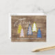 Unique, classy, trendy, pretty and decorative Holiday card with fun abstract Christmas trees on a faux weathered wooden farmhouse shiplap style wood grain texture pattern. This whimsical hipster design is made for the lover of the December Holiday season or cute graphic art illustrations. With room to customise or personalise with your family or individual names and year date of your choice, and a customisable season greeting poem on the backside of the card.