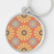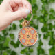 Retro Abstrat Blue and Orange Daisies Pattern Key Ring