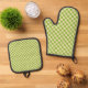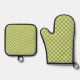 Retro Aesthetic Chequerboard Pattern Green and White Oven Mitt & Pot Holder Set